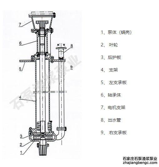 泵轴:连接叶轮和电机,将电机的旋转运动传递给叶轮,使叶轮能够旋转工作。泵轴需要有足够的强度和刚度,以承受叶轮旋转时产生的离心力和渣浆的作用力。